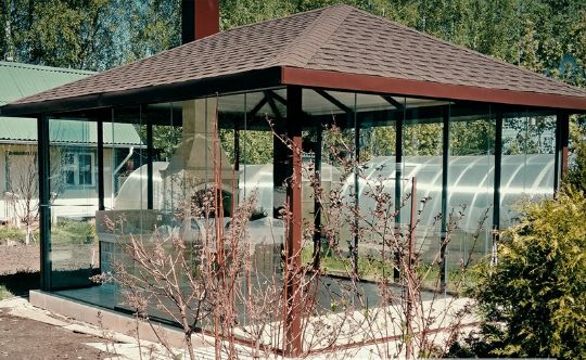 Если в беседке планируется поместить источник тепла, проводить время зимой или оборудовать зимний сад с высадкой экзотических растений.