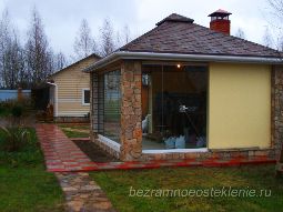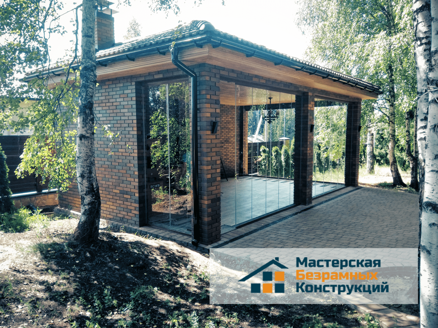 Здесь представлены фотографии безрамного остекления, выполненного нашей мастерской, с разными техническими характеристиками, которые зависят от особенностей конкретного строения.