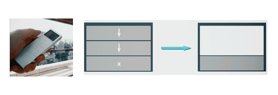 Нижнее стекло зафиксировано неподвижно, а другие движутся автоматически вниз и вверх, без вашего участия - с помощью пульта управления, постепенно открывая проем и превращаясь в элегантное стеклянное ограждение.